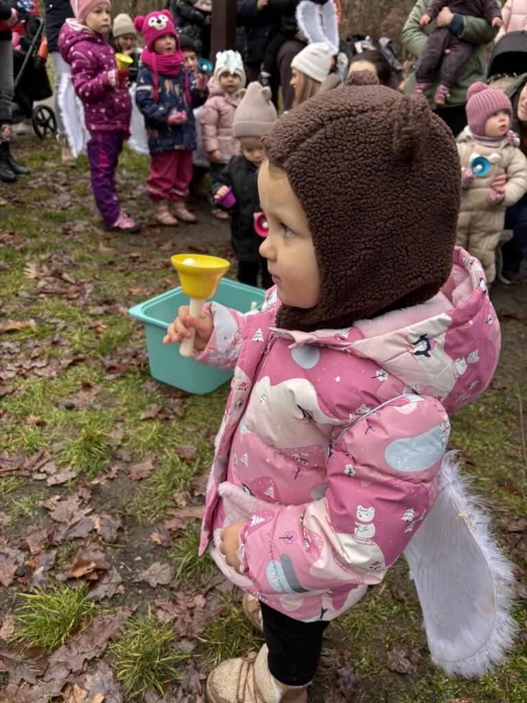 Na závěr procházky jsme objevili zvonečky, a společně s maminkami zastavili a zazpívali písničku pro Mikuláše a anděla.